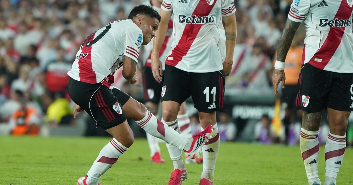 Juanfer frotó su pie zurdo para inventar un golazo de tiro libre que hizo delirar al Monumental.