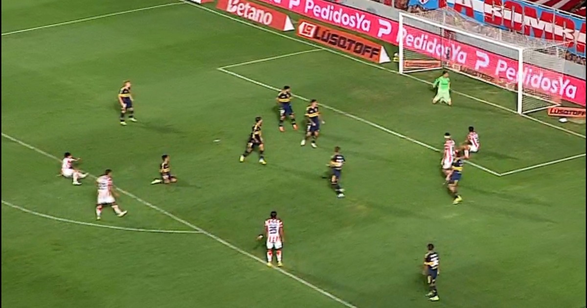 El arquero de Boca quedó clavado sin ninguna reacción tras el remate de Julián Palacios y volvió a quedar en la mira.