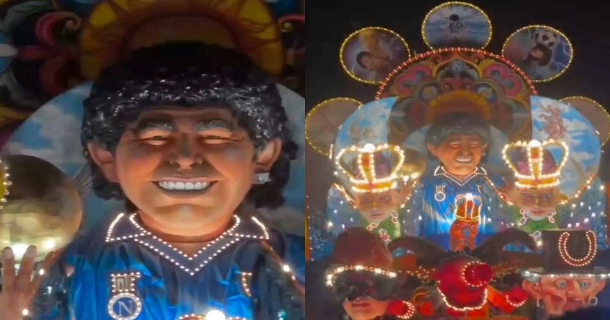 En el Carnaval de Acireale, el más famoso de la isla italiana, hicieron una gran carroza con la figura del astro argentino.